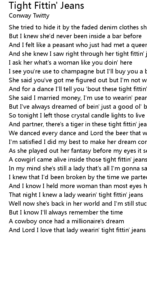 And for a dance I'll tell you 'bout these tight fittin' jeans |