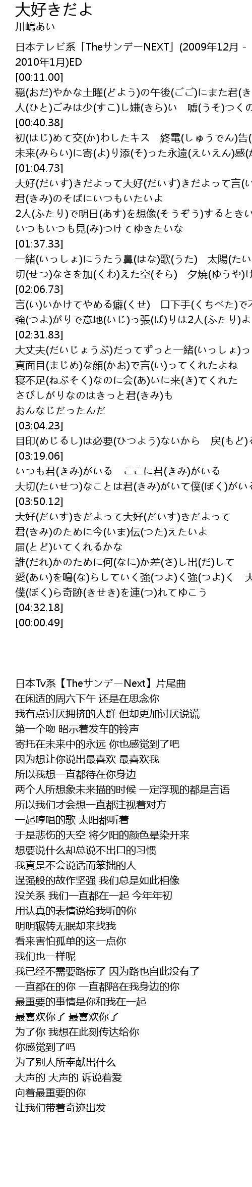 | [03:51.17] | 大好(だいす)きだよって大好(だいす)きだよって |