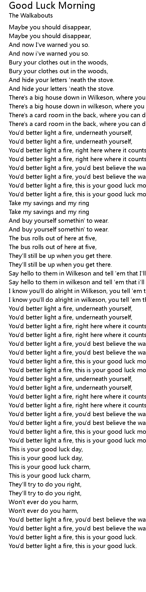 I know you'll do alright in Wilkeson, you tell 'em that I'll be back soon. |