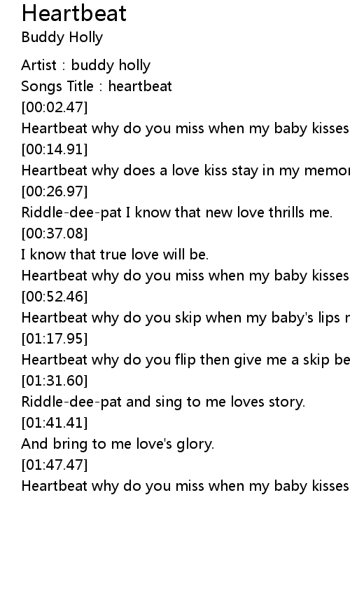 | [01:10.27] | Heartbeat why do you skip when my baby's lips meeet mine? |