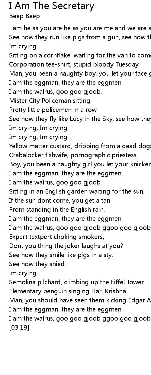 I am the walrus, goo goo gjoob ggoo goo gjoob. |