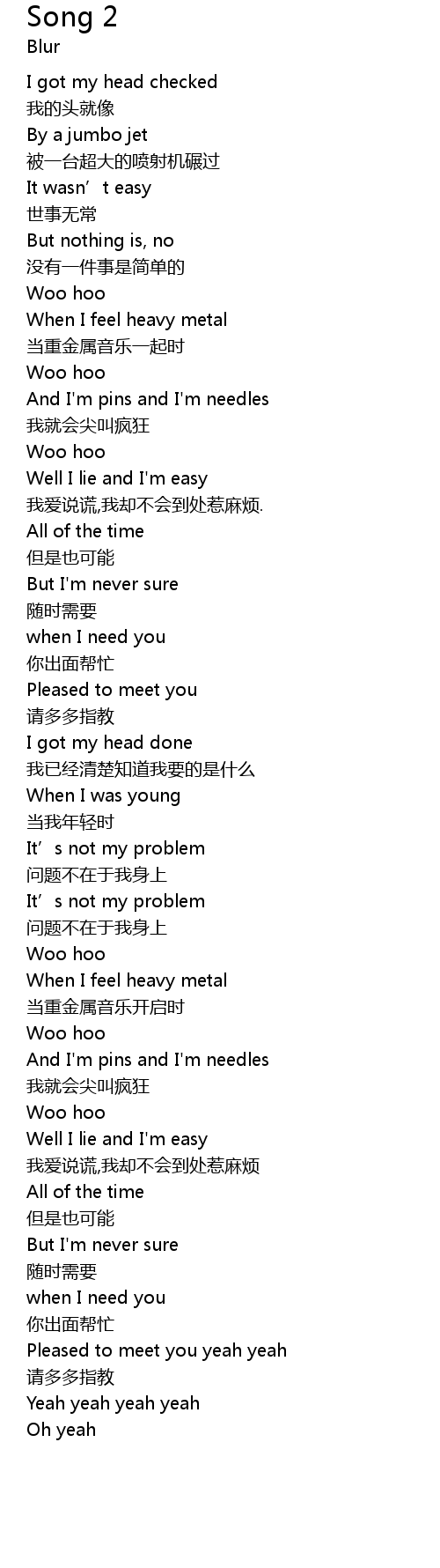 | Yeah yeah yeah yeah | |