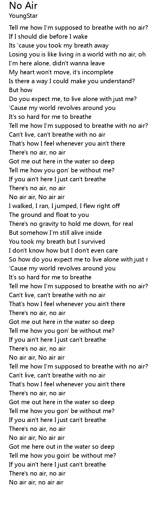 Can't live, can't breathe with no air |
