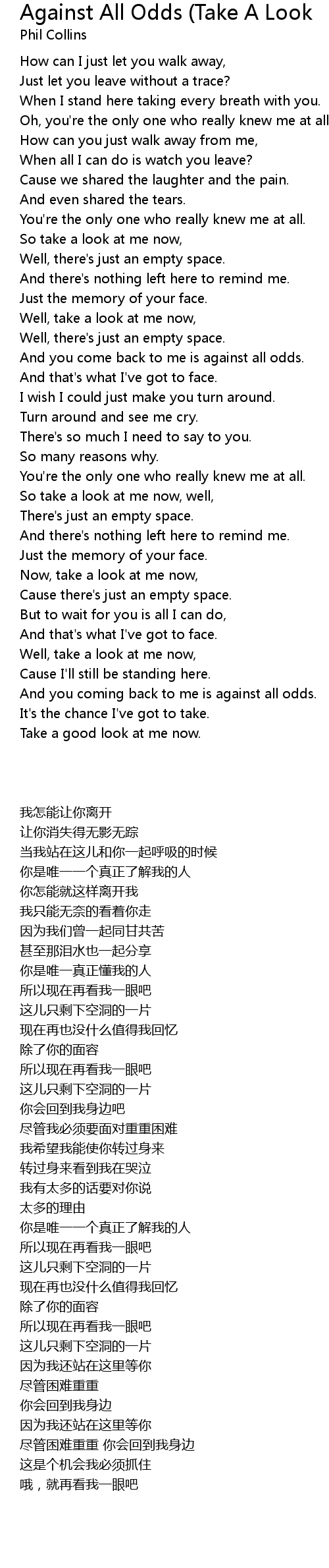 And you come back to me is against all odds. |