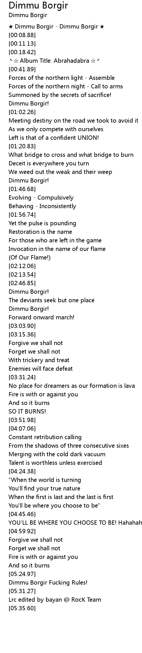 | [00:01.21] | ★ Dimmu Borgir - Dimmu Borgir ★ |