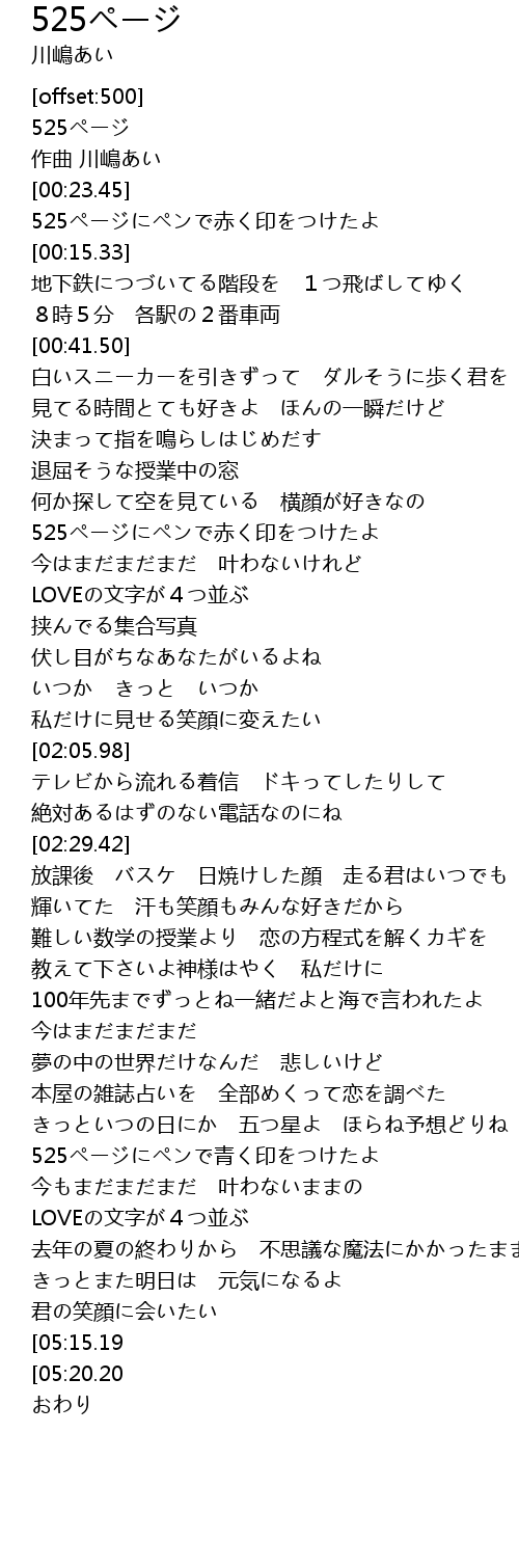 | [05:35.00][05:15.19][04:55.87][04:36.17] | (525ページに)… |