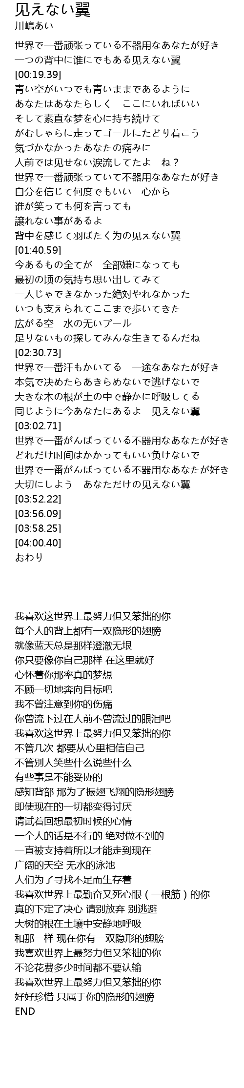 | [02:53.64] | 同じように今あなたにあるよ 见えない翼 |