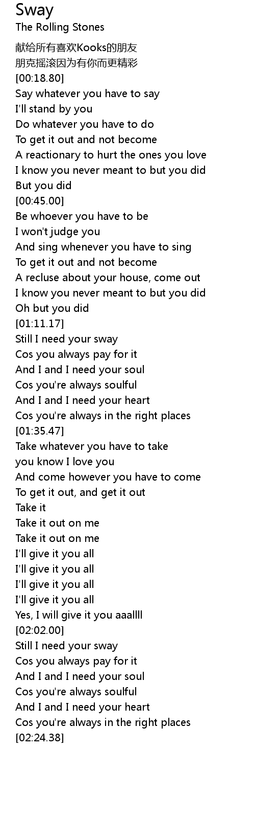 | [02:02.88] | Still I need your sway |