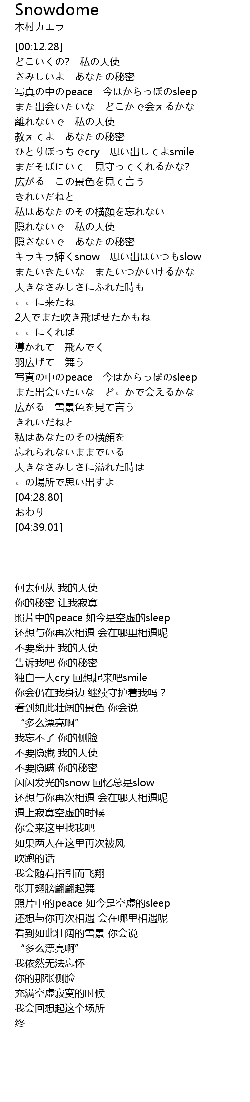 | [02:04.34] | キラキラ輝くsnow 思い出はいつもslow |