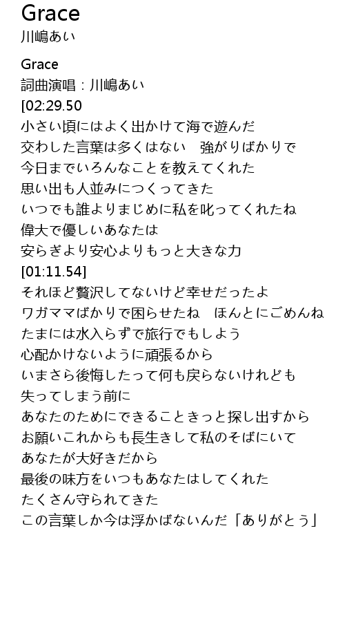 | [00:02.00] | 詞曲演唱:川嶋あい |