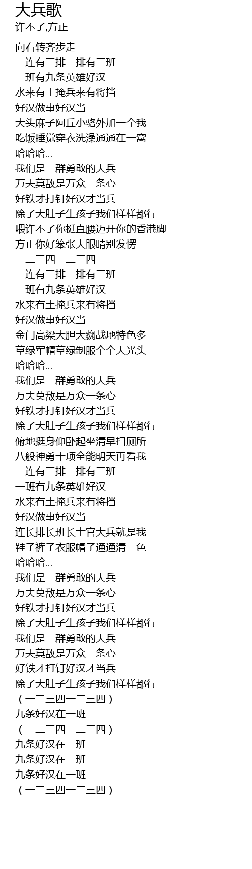 | [02:05.79] | 连长排长班长士官大兵就是我 |