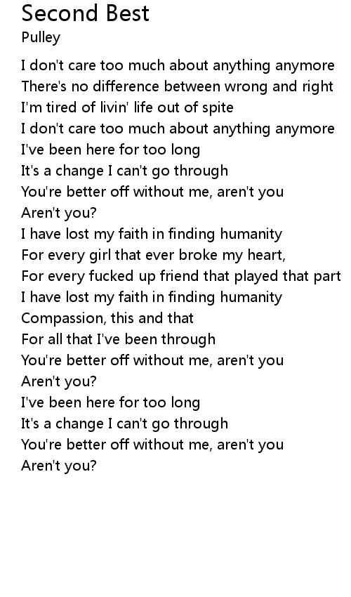 | I don't care too much about anything anymore | |