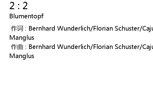 | [00:00.000] | 作词 : Bernhard Wunderlich/Florian Schuster/Cajus Heinzmann/Roger Manglus |