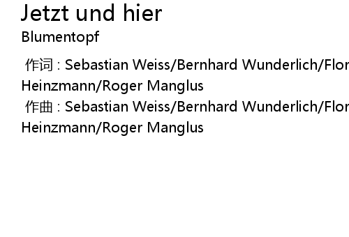 | [00:00.000] | 作词 : Sebastian Weiss/Bernhard Wunderlich/Florian Schuster/Cajus Heinzmann/Roger Manglus |