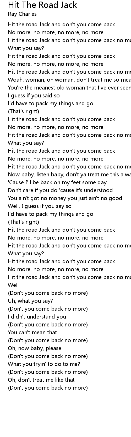 Hit the road Jack and don't you come back no more |