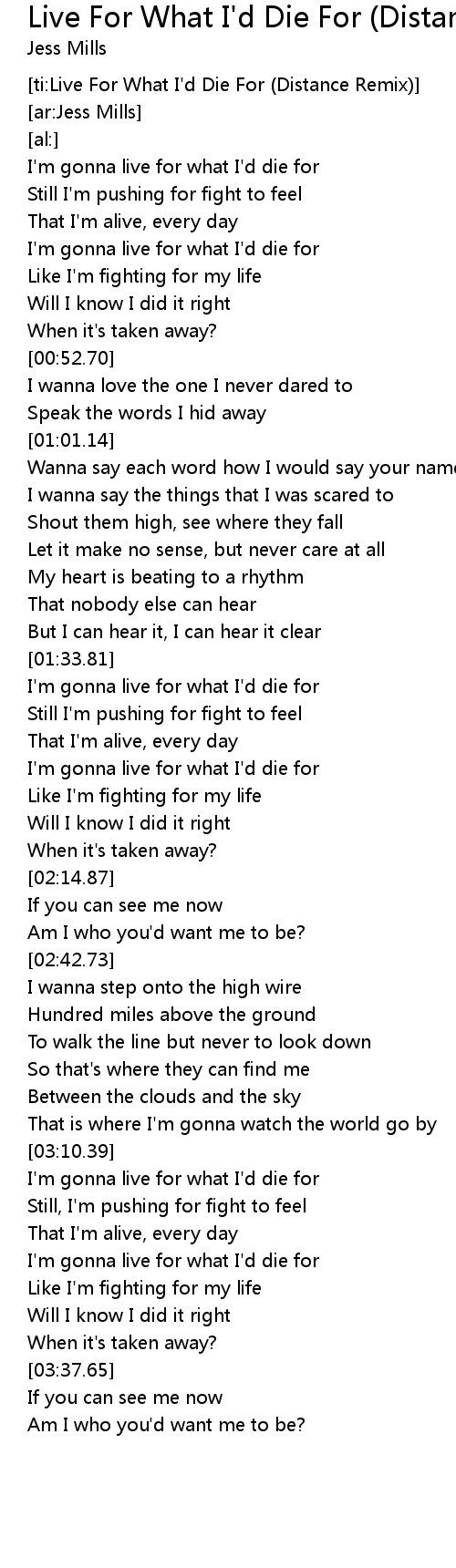 [ti:Live For What I'd Die For (Distance Remix)] |