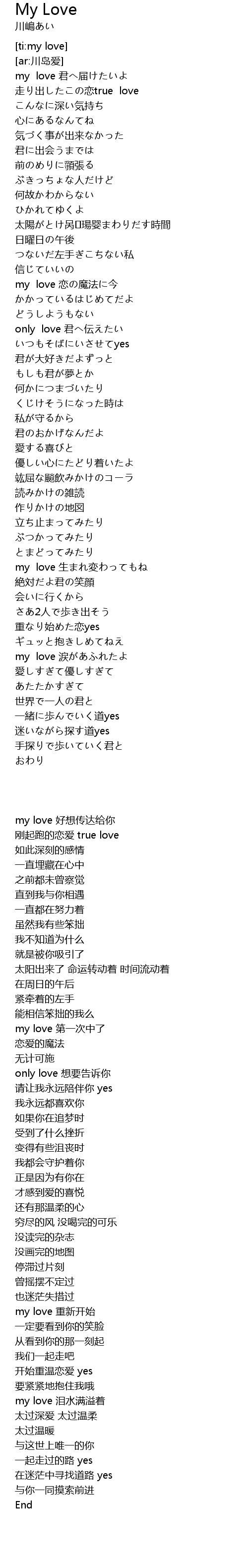 | [01:08.677] | my love liàn mó fǎ jīn |