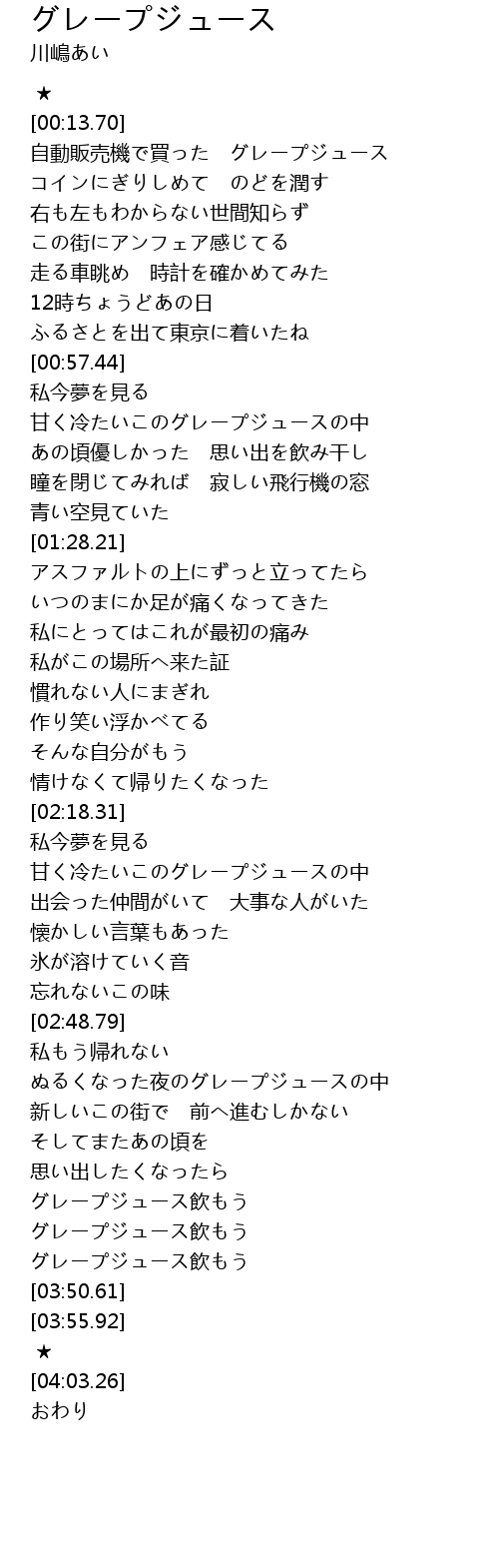| [03:45.13] | グレープジュース飲もう |