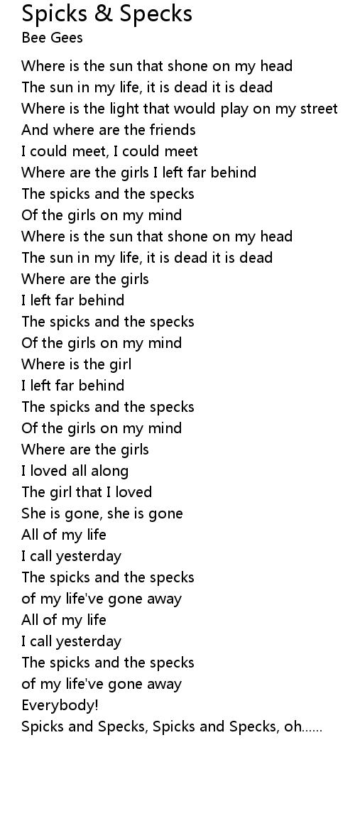 Spicks and Specks, Spicks and Specks, oh...... |