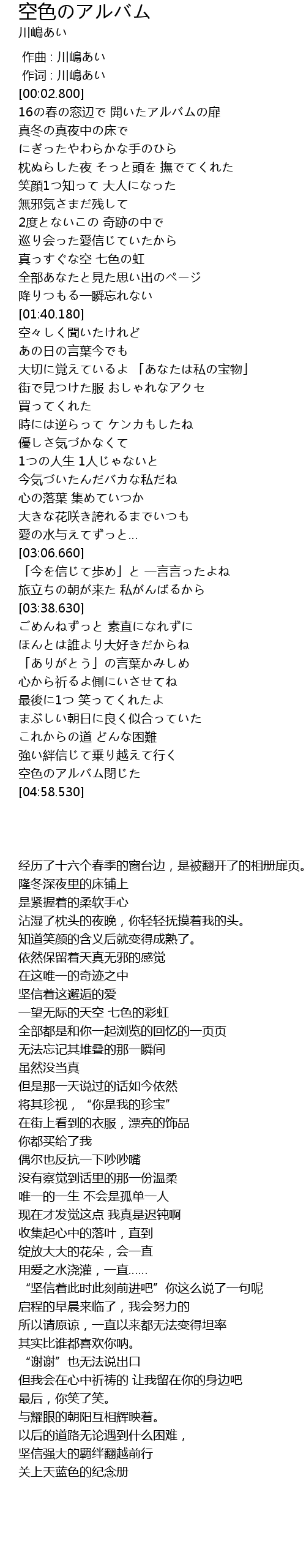 | [01:27.740] | 全部あなたと見た思い出のページ |