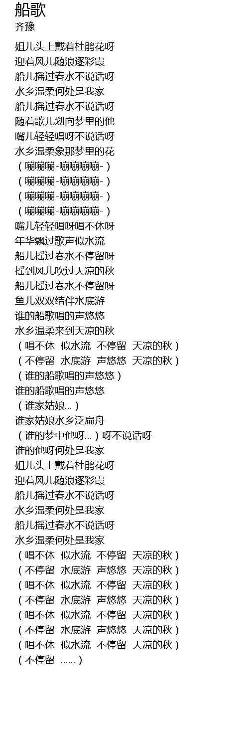 | [02:43.85] | 谁的船歌唱的声悠悠 |