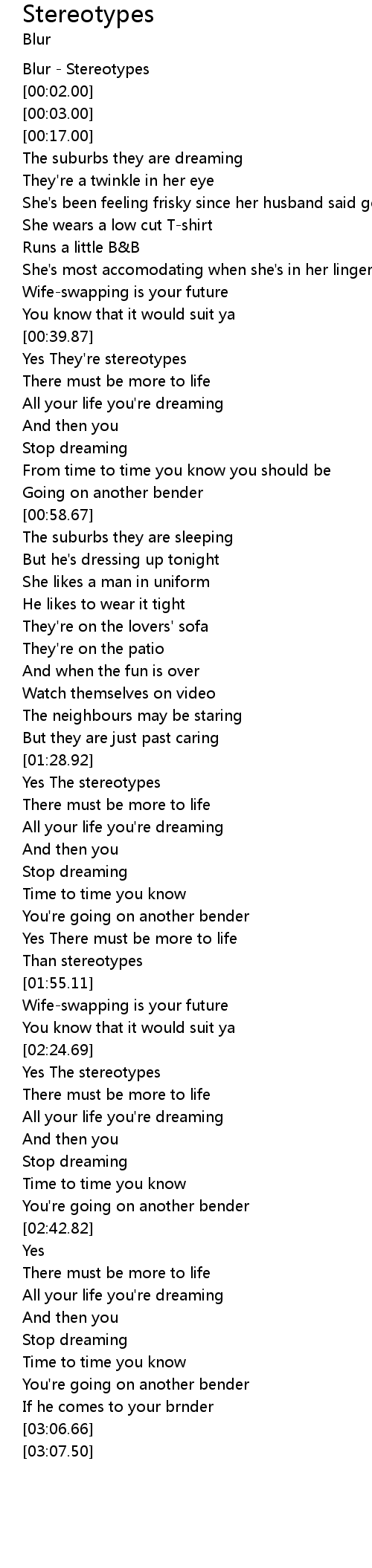 | [00:01.00] | Blur - Stereotypes |