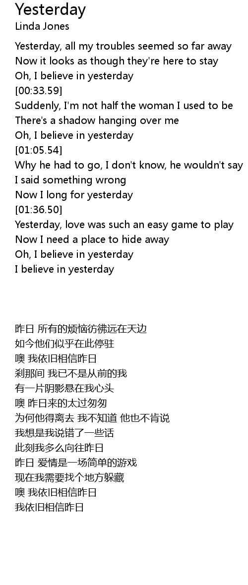 I believe in yesterday |