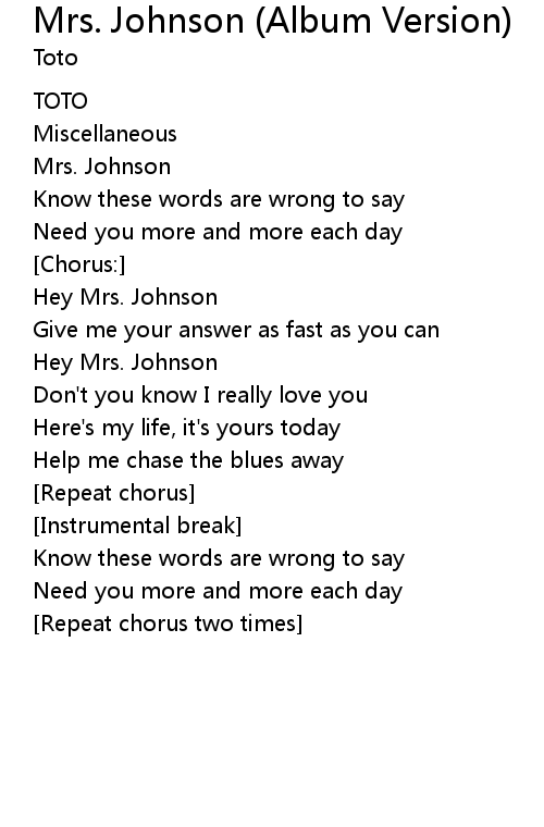 | Hey Mrs. Johnson | |