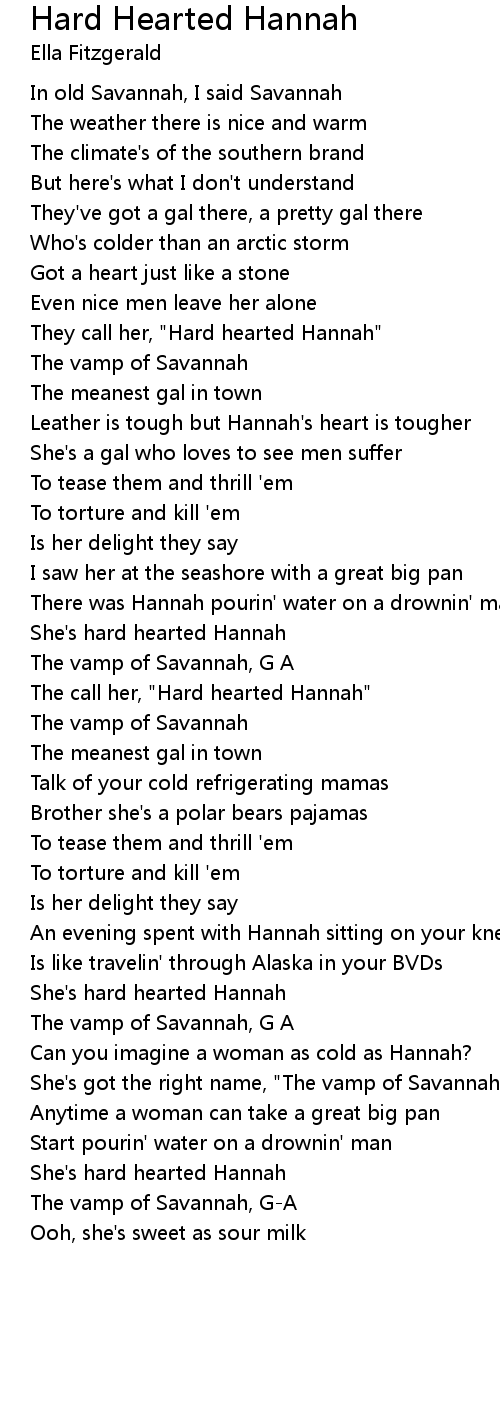 She's hard hearted Hannah |