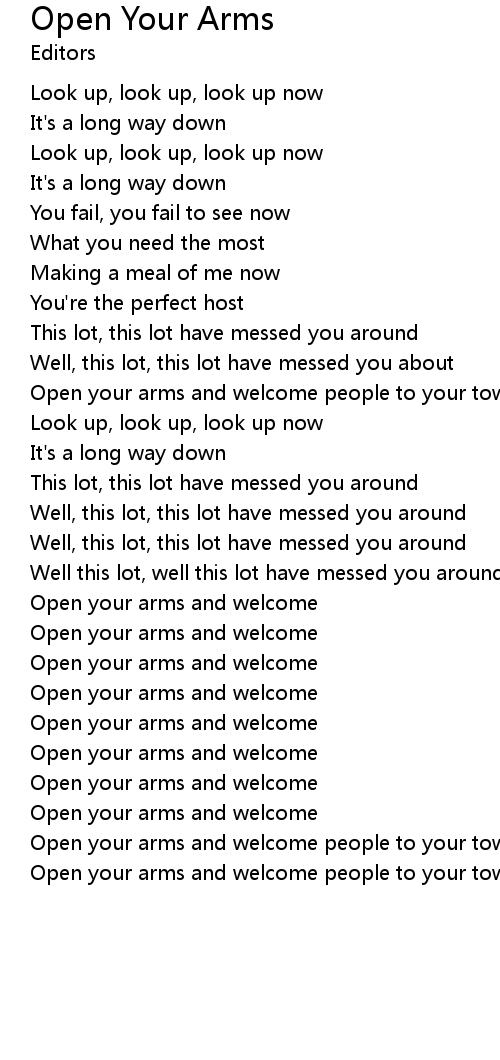 | Open your arms and welcome | |
