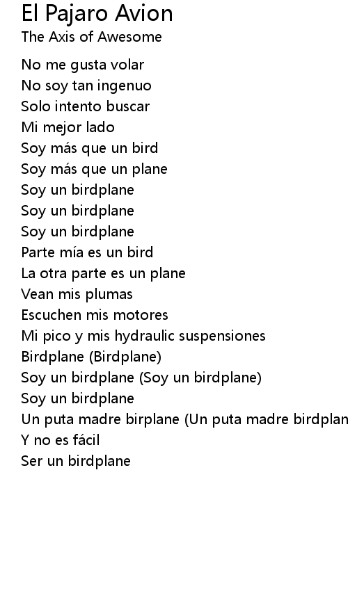 | Song | El Pajaro Avion |