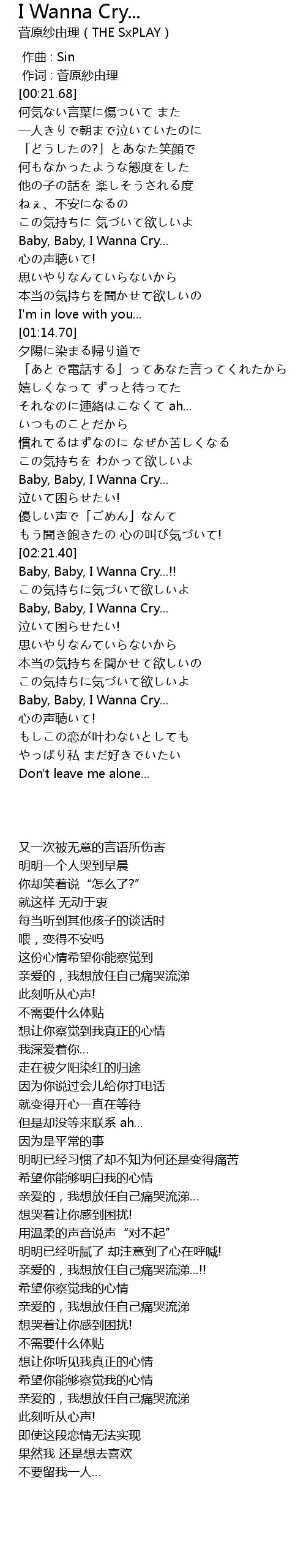 | [02:38.96] | Baby, Baby, I Wanna Cry...!! |