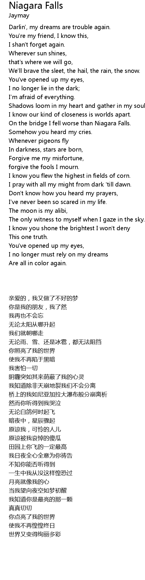 | [00:41.92] | On the bridge I fell worse than Niagara Falls. |