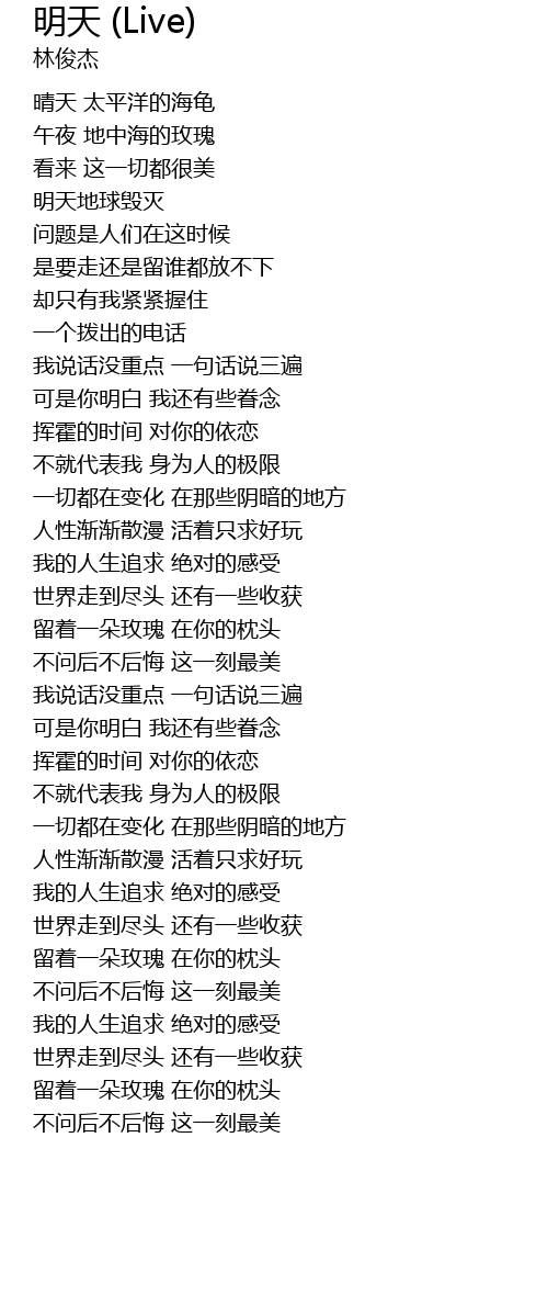| Song | 明天 (Live) |