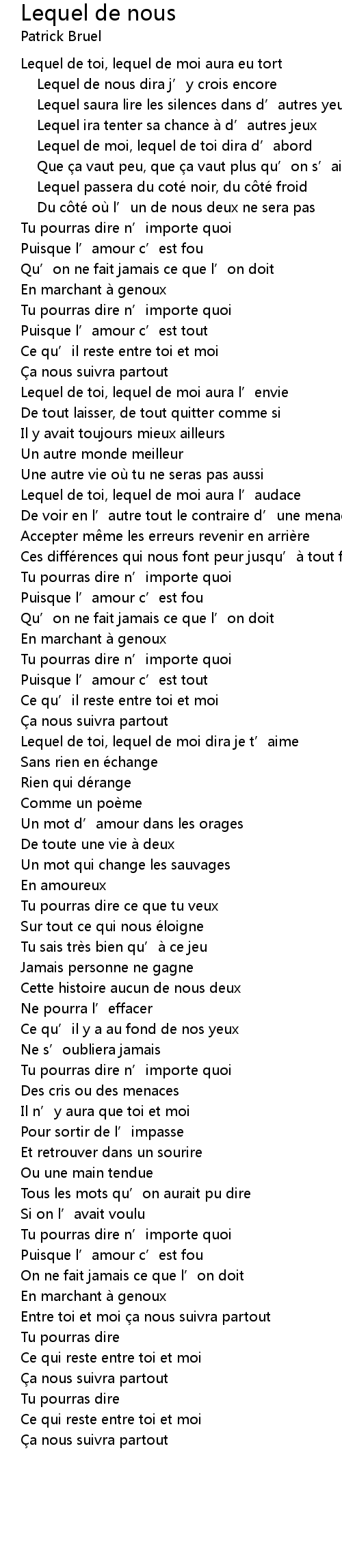 | Song | Lequel de nous |