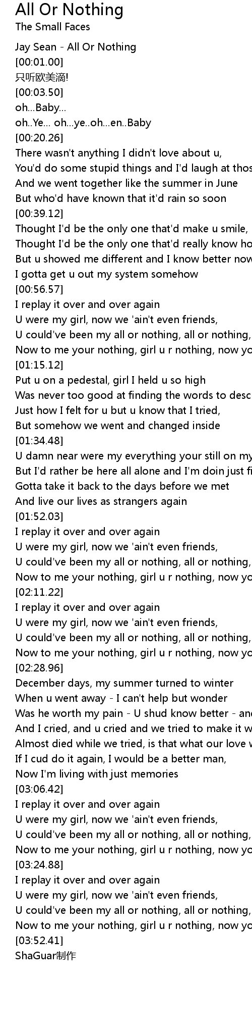 | [00:00.00] | Jay Sean - All Or Nothing |