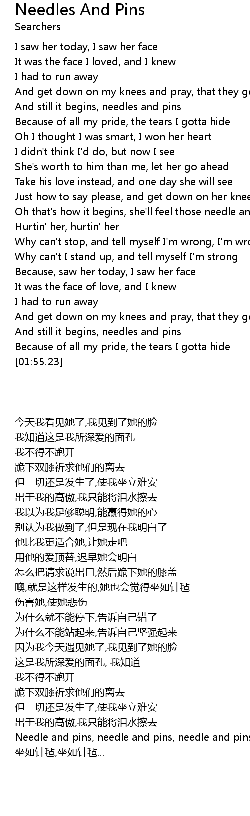 And still it begins, needles and pins |