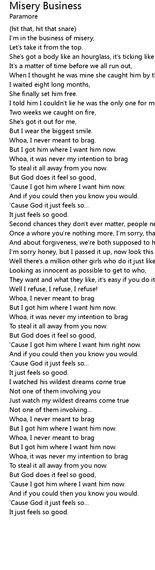 I'm in the business of misery, |