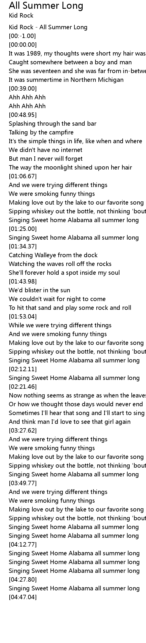 Singing Sweet home Alabama all summer long |