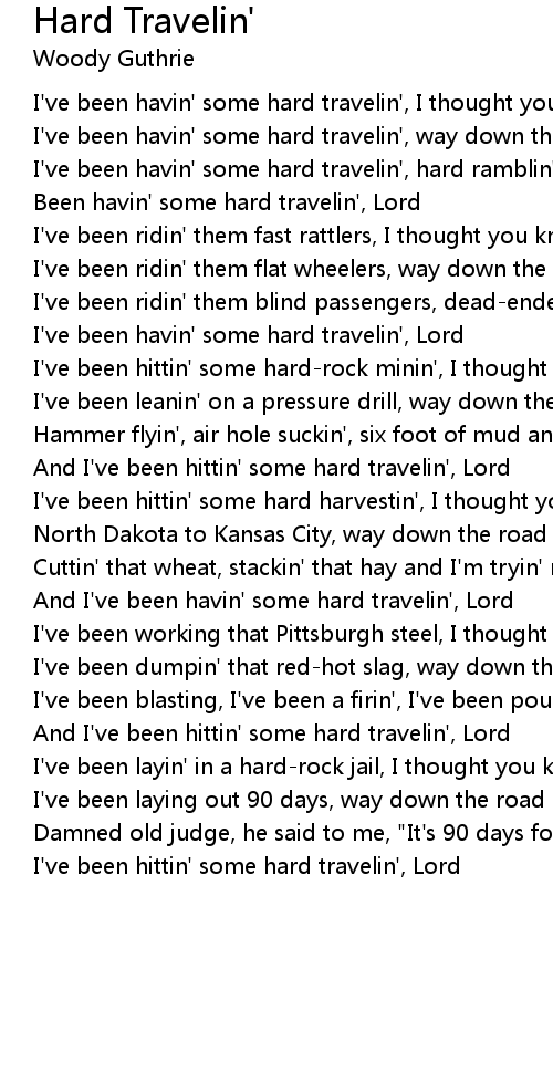 I've been havin' some hard travelin', hard ramblin', hard gamblin' |