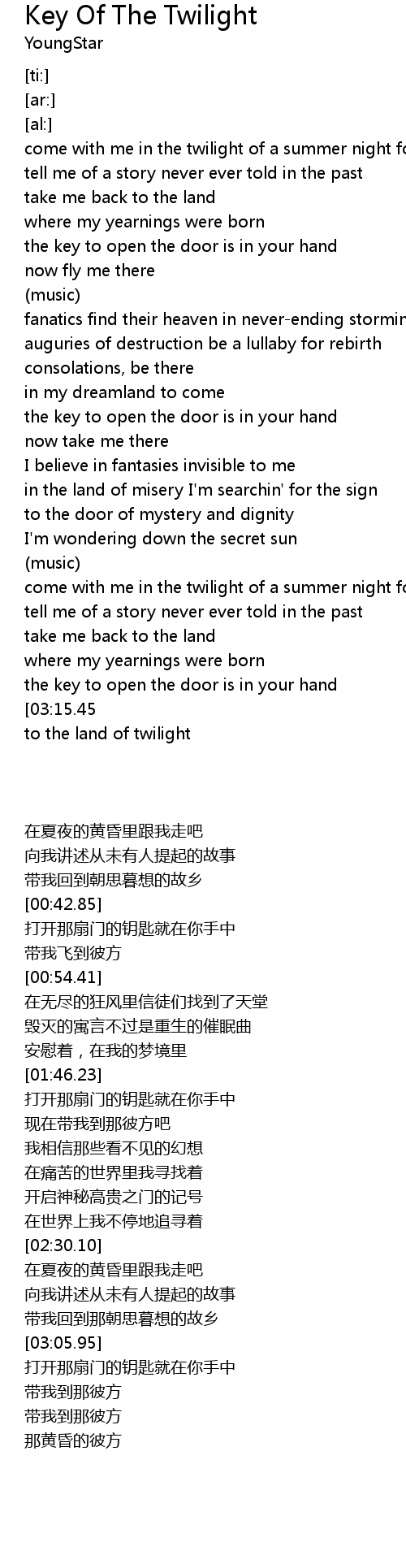| [03:20.09] | to the land of twilight |