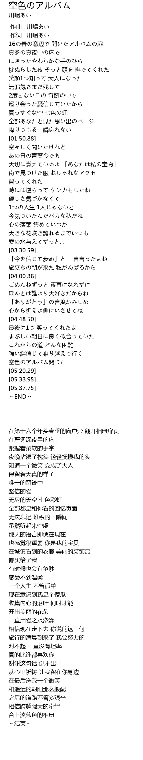 | [05:15.02] | 空色のアルバム閉じた |