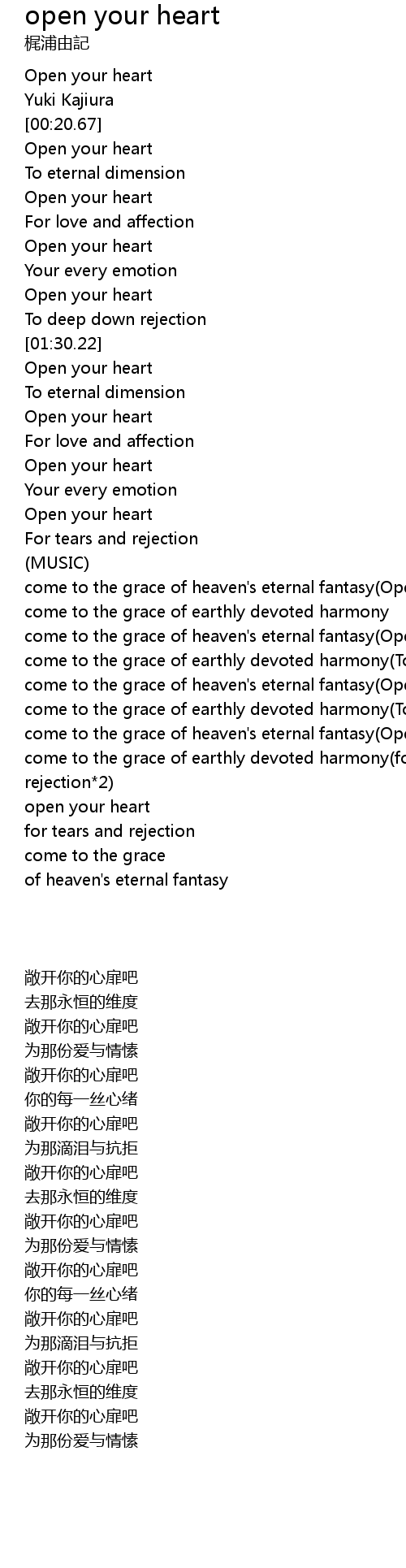 come to the grace of heaven's eternal fantasy(Open your heart) |