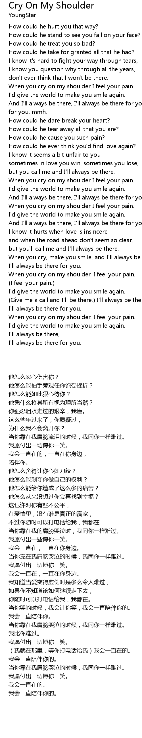When you cry on my shoulder. I feel your pain. |