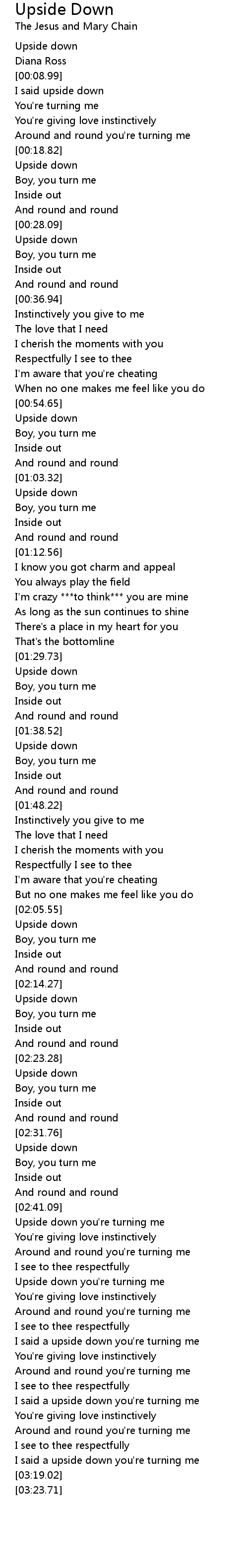 I said a upside down you're turning me |