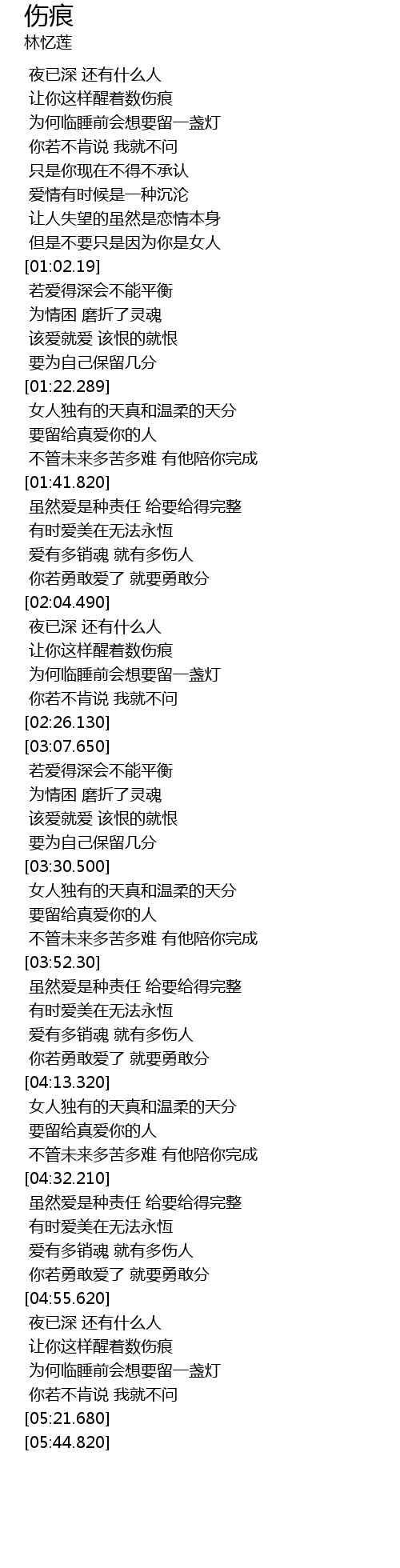 | [05:01.740] | 让你这样醒着数伤痕 |