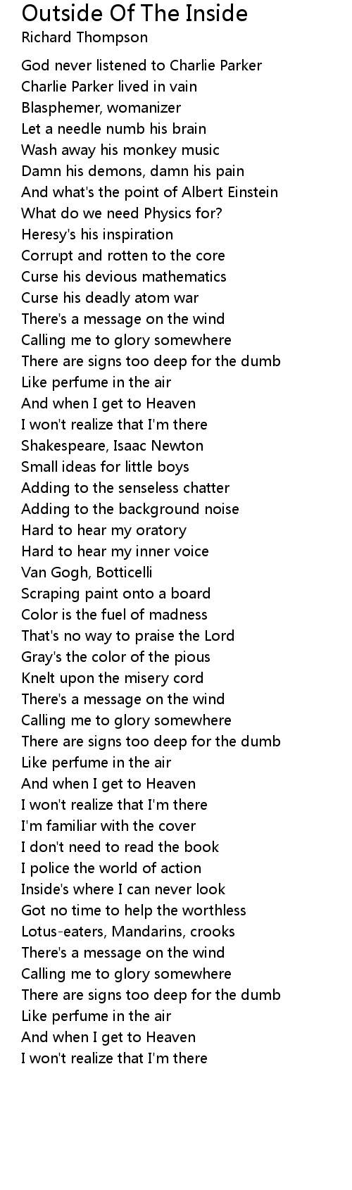 Inside's where I can never look |