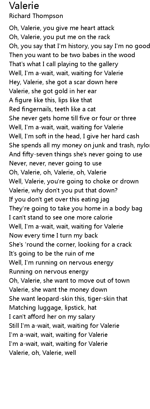 Oh, Valerie, oh, Valerie, oh, Valerie |