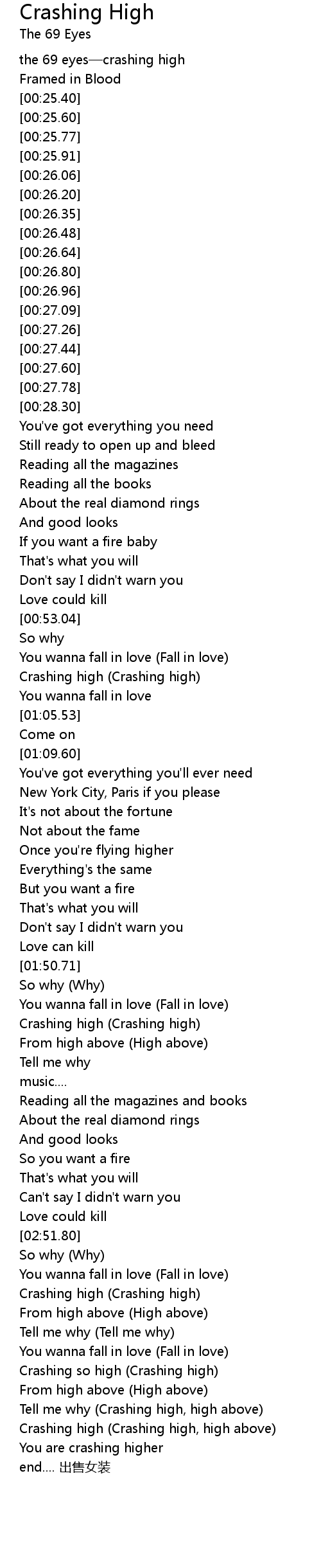| [01:00.89] | Crashing high (Crashing high) |