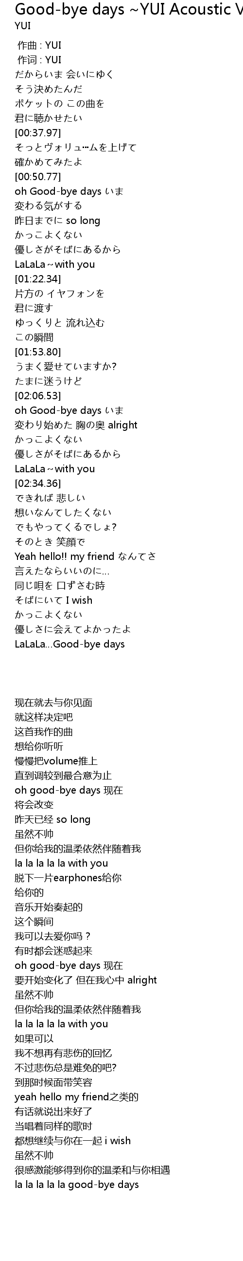 | [00:00.00] | 作曲 : YUI |